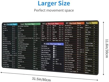 Computer Power Point Excel Word Short Cut Shortcuts Keys Outlook Command Prompt Gaming Keyboard Mouse pad Mat Huge Extended XL Rubber Sole for Home Office(31.5"X 11.8")