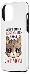 Busy Being A Programmer And A Cat Mom Great programmer cat lover design for cat mom programming. If you are searching for computer coding or computer coder this is for you. Two-part protective case made from a premium scratch-resistant polycarbonate shell and shock absorbent TPU liner protects against drops Printed in the USA Easy installation