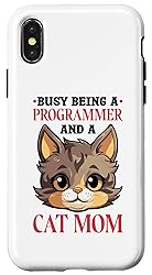 Busy Being A Programmer And A Cat Mom Great programmer cat lover design for cat mom programming. If you are searching for computer coding or computer coder this is for you. Two-part protective case made from a premium scratch-resistant polycarbonate shell and shock absorbent TPU liner protects against drops Printed in the USA Easy installation