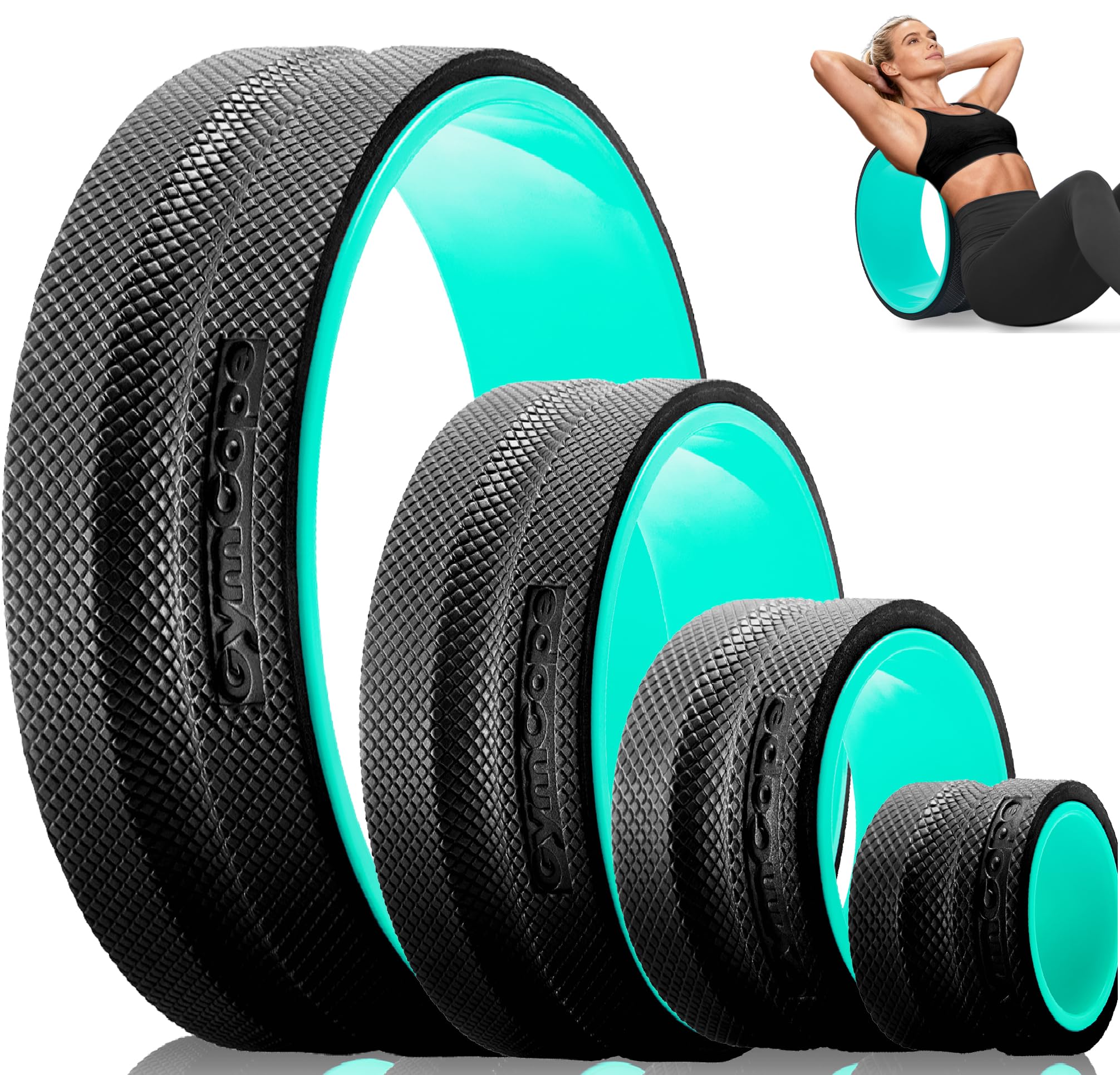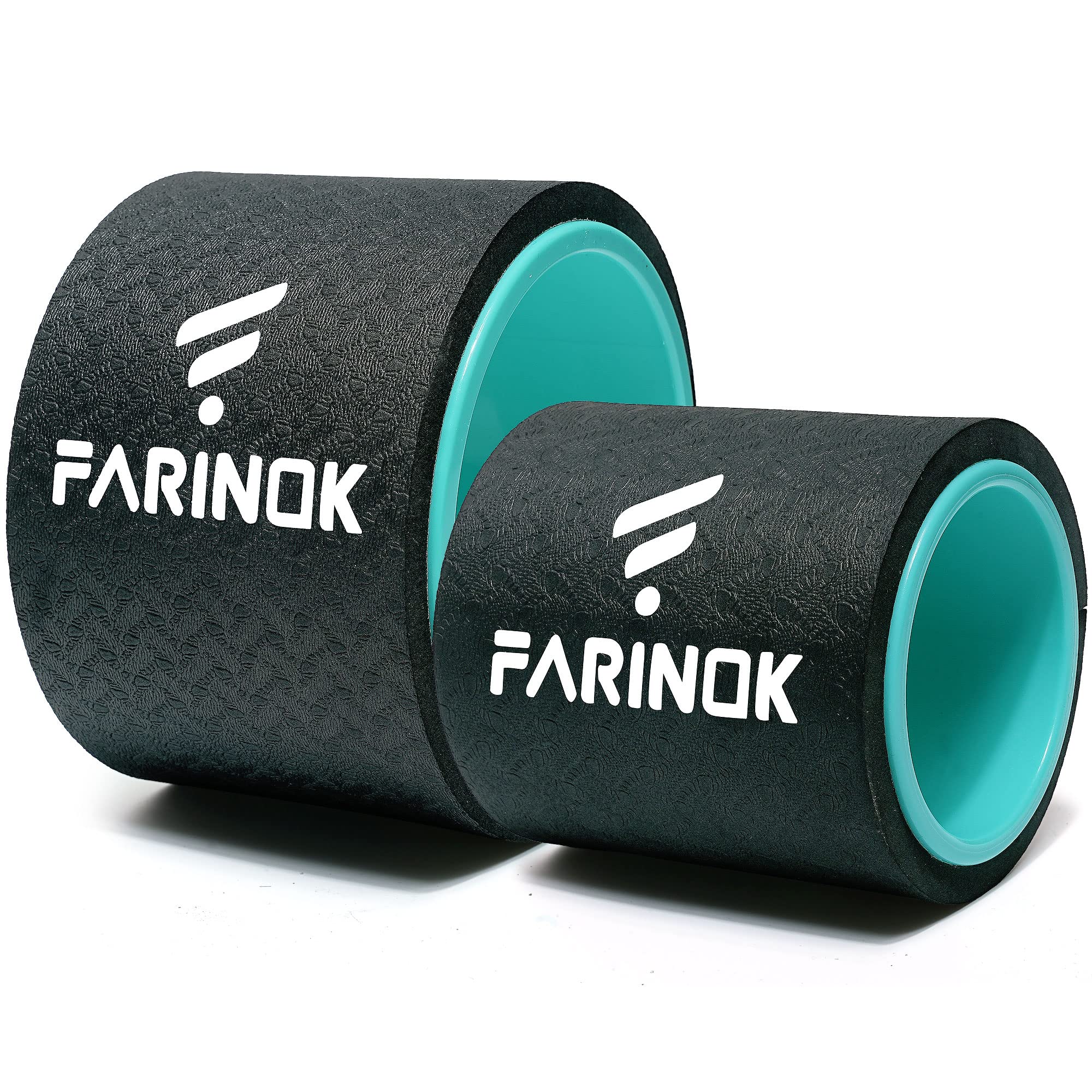 - Yoga Wheel Set of 2: The 2 sizes wheel provide different levels of pressure to the muscles targeted to your specific training needs. Our big wheels are 13 inches in diameter with gentle pressure and are excellent for deep posture and backbending. 4'' in diameter with deep tissue pressure, perfect for massaging the neck, back and legs.