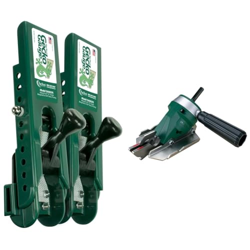 - Gecko gauge adjusts at 1/4-inch increments for 4-8 inch siding reveals; Snapper Shear rotates 360° to make circles down to 3 inches.