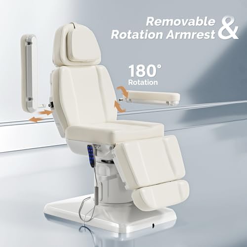 OmySalon Electrical Facial Beauty Spa Medical Treatment Bed, 120° Rotation Massage Tattoo Dental Aesthetic Chair with 3 Motors & Remote Control, Off White