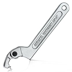 Material: Made of chrome vanadium steel with chrome plated surface, sturdy and not easy to rust. Design: The C spanner hook wrench comes with a movable head, which makes it easy to adjust the size, and the end has a circular hole, convenient for you to carry out and store. Function: Ideal for tightening and removing round nuts with hole, bearings and collars on shock absorbers, water meters, machinery and equipment. Application: Suitable for home improvement repair, auto repair, plumbing repair, appliance repair, machine tool, mechanic repair and more. Compatibility: Suitable for nuts with a diameter of 19-51mm (3/4-2")