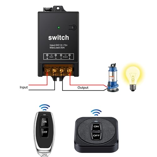 12V Remote Switch with 30A Relay, 12 Volt Wireless Remote Control Switch for Heavy Duty Use, DC On/Off, 24V-72V for Lights, Pump, Fan, Motor