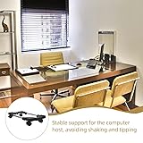 - Description The CPU stand has strong load-bearing capacity and stable structure. The smooth corners are finely polished, and the edges are smooth and of burrs. With four wheels, this mobile CPU holder will come in handy when you're cleaning. Features -Color:Black -Material:PP,Stainless Steel -Size:52.00X34.00X8.00cm/20.44X13.36X3.14in -Note:The length is adjustable, from 40cm to 52cm -The movable design of this desktop computer tower stand allows for flexible layout options, making it easy to adjust to your specific needs. -Whether you're using it at home or in the office, this stand is suitable for both environments and can accommodate a variety of computer tower sizes. -With its sturdy construction, this stand provides reliable protection for your computer tower, ensuring that it stays safe and secure. -The sleek black exterior of this stand adds a stylish touch to any workspace, making it a great addition to any modern office or home setup. -Made with PP and stainless steel, this stand is built to last and provides durability that you can rely on. - Color: Black. - Size: 52.00X34.00X8.00CM. Package Including 1 x CPU Stand