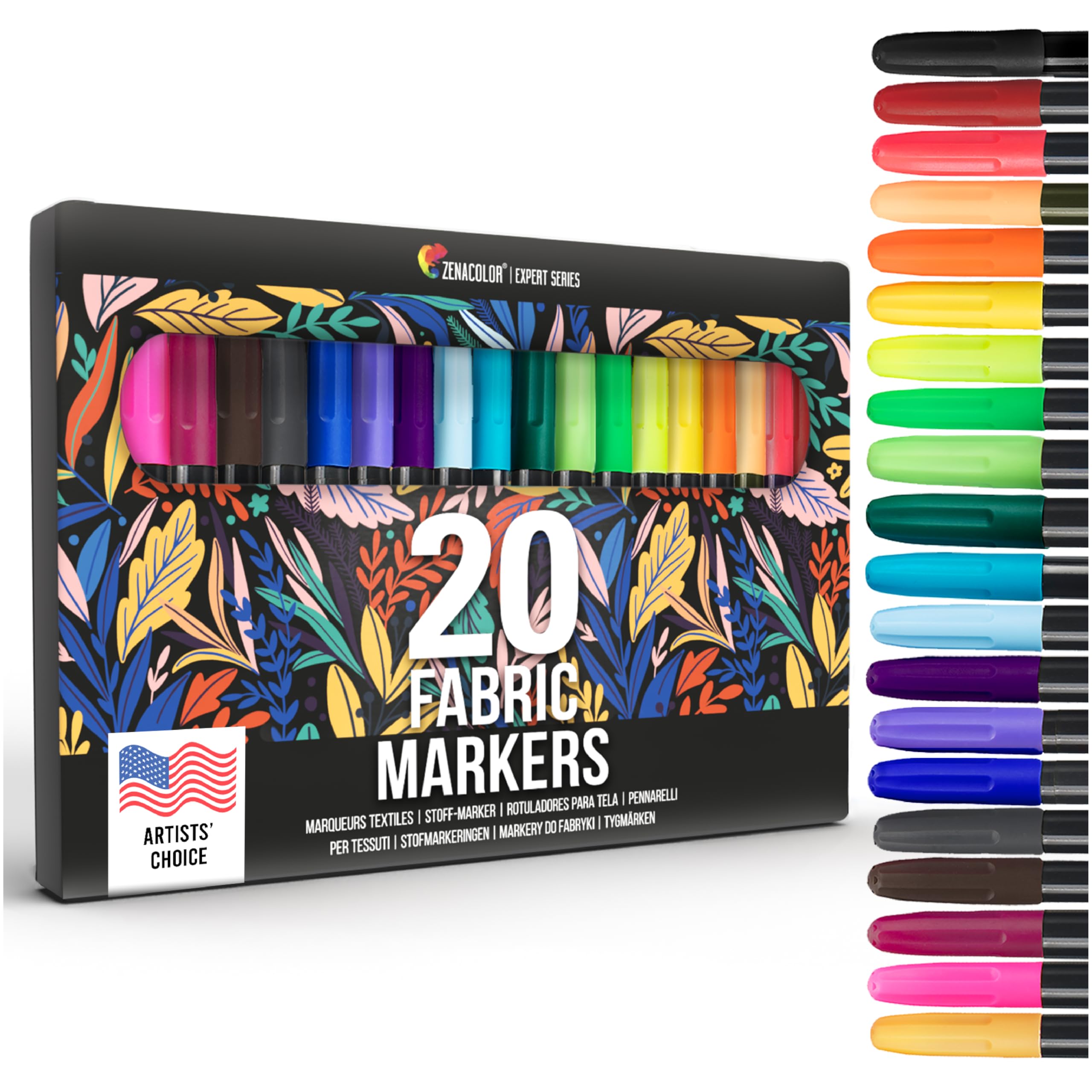 Zenacolor 20 Fabric Markers with Dual Tips - Vibrant Colors Fabric Markers Permanent for Clothes - Fine and Chisel Point Fabric Paint