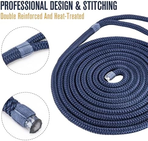 - 【Double-Braided Structure】Our boat dock lines are expertly crafted with a durable double-braided structure, providing unbeatable strength and flexibility, 25-30% stronger than comparable. Whether securing your boat in rough conditions or everyday docking, these boat ropes for docking with loop ensure maximum durability and performance.