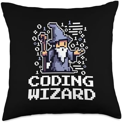 Coding Wizard Pixel Fantasy Coder Magic 8-Bit Design Throw Pillow