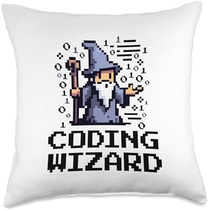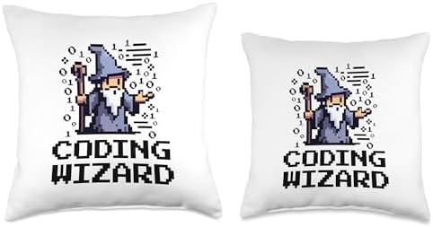 Coding Wizard Pixel Fantasy Coder Magic 8-Bit Design Throw Pillow