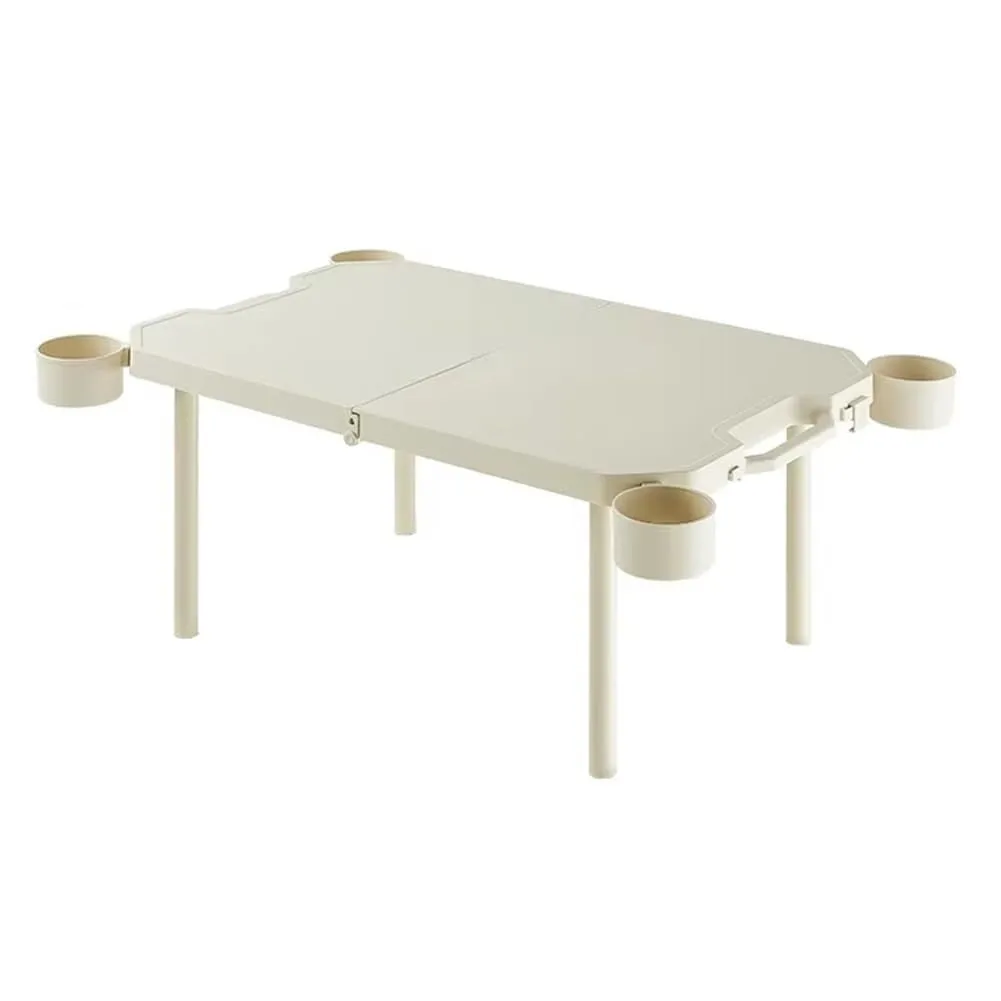 Generic 4ft Portable Folding Table, Plastic Table w/ 4 Adjustable Heights, Indoor Outdoor Heavy Duty Fold-in-Half Utility Table w/Carry Handle 300LBS, White