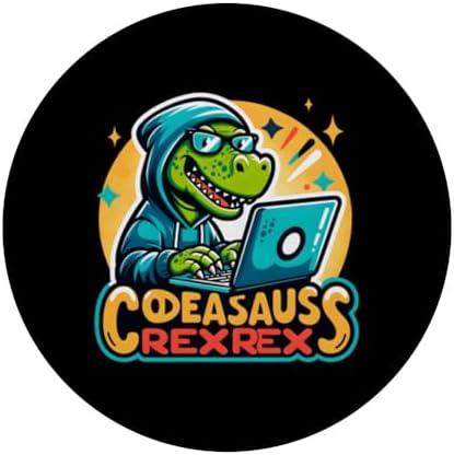 - Codeasaurus Rex design featuring an adorable dinosaur with glasses and a laptop, perfect for programmers, coders, and tech enthusiasts. Ideal for those who love dinosaurs, coding, and fun designs.