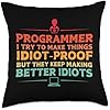 - Do you love to write codes? Best gift idea with a quote "Programmer I try to make things idiot-proof but they keep making better idiots" for programmers and software developers. Cute present for computer lovers and fans who loves to use HTML and JavaScript