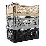 Collapsible Storage Box, Foldable Crate Organizer Bin with Handle, Stackable Crates for Home Organization (Black-Sand-Gray, 4L - 3-Pack)