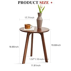 - This round side table stands out with its modern design and practical features. The tripod frame structure provides stability and aesthetic appeal, making it a great match with styles like mid century modern coffee table or minimalist coffee table. These small tables are made from MDF and solid wood, lightweight and space-saving, with rounded edges to prevent sharp parts from scratching your body. The table's multi-purpose design makes it suitable for various settings, whether used as living room side tables, bedside tables, coffee tables, snack tables, or decorative tables. It complements a wood nightstand set of 2 and bedroom end tables set of 2, as well as living room side tables and wood coffee tables. Additionally, this piece of furniture is very easy to assemble, with clear instructions provided, taking about 10 minutes to set up. This table is not only an ideal choice for home decor but also combines functionality and aesthetics, suitable for use in the home, bedroom, living room, and outdoor spaces like gardens and patios.