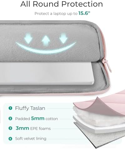 • Four-Layer Of Protection:This isn't just a laptop bag, it's a high-tech sandwich of safety! Layer 1: Fluffy Taslan (for that plush feel). Layer 2: 5mm padded cotton (because your laptop deserves a mattress too). Layer 3: 3mm EPE foam (the bouncy castle of protection). Layer 4: Soft velvet lining (because even laptops appreciate luxury). Together, they form the ultimate defense system for your precious tech. It's like a medieval castle, but for your MacBook!