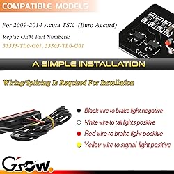 ✅ [Compatible Model]: Designed for Acura TSX 2009-2014 (Euro Accord). Please verify your model before placing an order. ➤【Versatile Lighting Modes】: Enhance road safety with Tail Light, 5-Times Strobe Brake Flash Light, and Sequential Turn Light modes. 🏆 [Premium Quality Material]: Constructed with durable ABS material, the GSOWO LED side marker light features a sealed design and waterproof IP67 rating. Its high strength and excellent heat resistance ensure long-lasting performance without fading. 🚗【Effortless Installation】: Simply plug and play the tail light for Acura TSX 2009-2014 (Euro Accord). 🏆【Optimal Lighting Design】: Emitting light 5X brighter than standard OEM bulbs, our turn signal light not only enhances vehicle visibility during inclement weather but also adds a stylish flair to your beloved car.