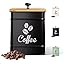 Airtight Coffee Canister - 40 oz Large Iron Black Coffee Container Airtight - 6 x 8 inch Metal Jar - Stylish Countertop Container for Coffee Grounds, Beans, Pods & More with Rubber-Lined Bamboo Lid