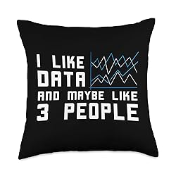 100% Polyester This Cool Graphic says "I Like Data And Maybe Like 3 People" and shows data line markers. Awesome for data analyst, science analyst, someone who analyzes data. Software engineers or a person who loves to gather data information. This design influences an awesome occasion for data analyst meetups, gatherings, and engineering. Awesome for data scientists, behavior analyst and engineers who loves to gather data on office, work field, or even a data analyst working from home. 100% spun-polyester fabric Double-sided print Filled with 100% polyester and sewn closed Individually cut and sewn by hand Spot clean/dry clean only