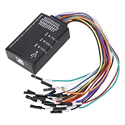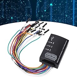 Multi Protocol Analysis: Simultaneously analyze multiple protocols with real time display. Show data in for ASCII, hexadecimal, decimal, octal, binary formats. Easily debug and save protocol analysis content in text or spreadsheet files. Custom Protocol Analysis Settings: Easily set parameters for protocols like for RS232 and for UART. Adjust baud rate, data length, stop bits, parity, etc. before or after data collection for accurate analysis. Powerful Protocol Analysis: Supports up to 17 serial protocol analyses including for SPI, for UART, for CAN, for JTAG, 1 WIRE. Covers almost all common serial board level and field level bus protocols. 16 Channel Logic Analyzer: Supports the latest version of for SALEAE LOGIC2 software. Directly download software from the official website, no need for cracked software. Compatible with for Windows, for Linux, for OS X, and supports future software upgrades. High Sampling Rate: Supports 100M sampling mode with up to 3 channels. Tested in 3 channel 100MHZ mode before shipping. Requires USB 2.0 high speed mode support for all 3 channels.