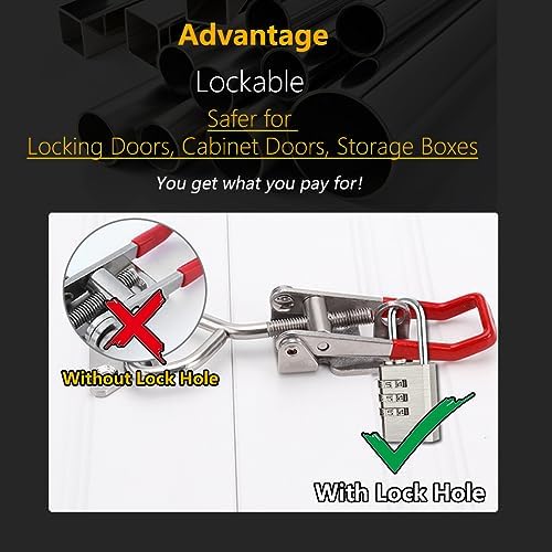 - 100% 304 Stainless steel material--JoyTube toggle latch clamp Made of solid 304 stainless steel. Corrosion resistant, anti-rust and ultra durable.Works well for different temperature environments, indoor or outdoor.anti-slip handle,safe and comfortable operation.