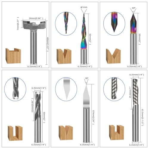 - Application Scenario: These router bits are widely used to carve, drill, and cut on hardwood, plywood, acrylic, plastic fiber, resin, PCB, aluminum and other material.