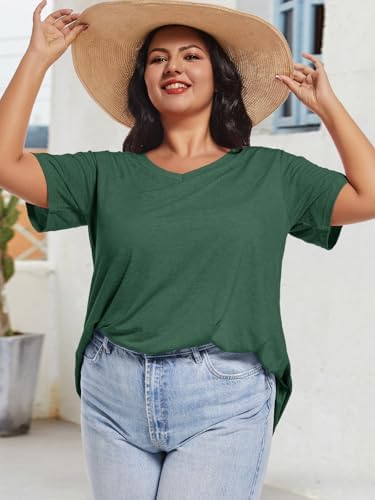JOELLYUS Plus Size Tops for Women Summer Top Loose Fit Tee Shirts V Neck Short Sleeve Blouse
