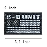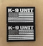 2 Pack Black White Reflective K-9 Unit Patch US Flag with Hook Back for Service Harness Tactical Vest Collar Hook-Fastener Backing (K-9 Unit)