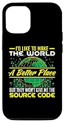 Funny programmer and Coder design. I'd like to make the world a better place but they won't give me . Geek Quote T-Shirt. For game developer, computer science majors, computer scientist, and debugger expert. Two-part protective case made from a premium scratch-resistant polycarbonate shell and shock absorbent TPU liner protects against drops Printed in the USA Easy installation