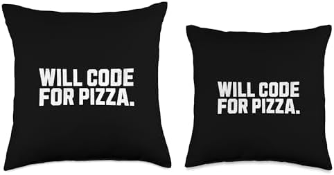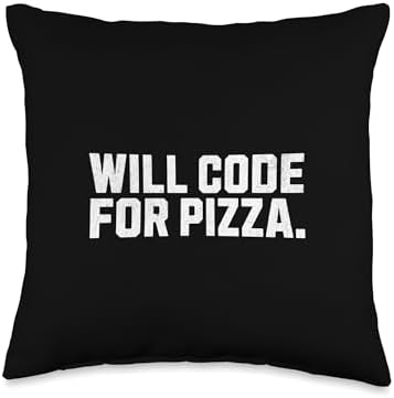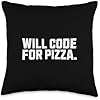 Will code for Pizza - Funny quote meme computer engineer Throw Pillow