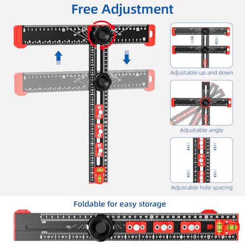 - 【CRAFTED FROM ALUMINUM ALLOY & HIGH ACCURACY】This professional-grade multifunctional woodworking ruler is crafted from aluminum alloy with an anodized surface, which is necessary to keep the scale clear and high-precision measurements, and we have also made a foldable design, which is designed to give you greater convenience in storing and carrying.