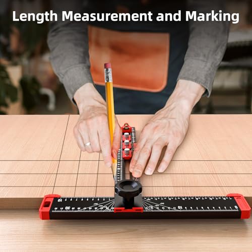 - 【LENGTH MEASUREMENT AND LINE MARKING】This T square ruler is equipped with metric and imperial dual-scale measurement standards to help you efficiently and accurately measure and mark lengths, which is an essential part of woodworking.