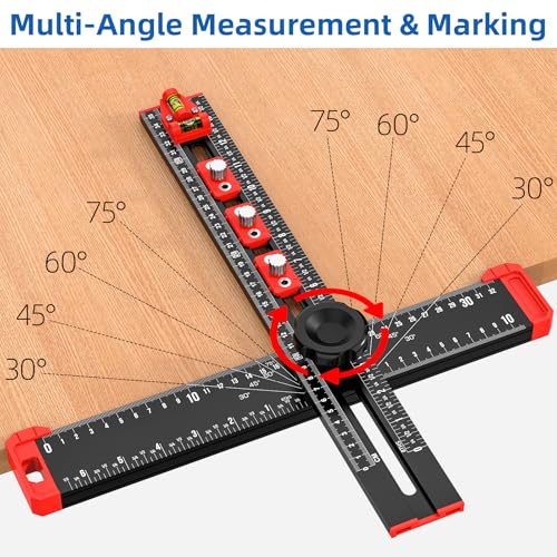 - 【MULTI-ANGLE MEASUREMENT AND LINE MARKING】It is also a professional angle ruler, the ruler is configured with fixed measurement angle standards of 30°, 45°, 60°, 75° and 90°. Simply loosen the fixed knob to adjust the angle for precise angle measurement and line marking, making your woodworking work more enjoyable.
