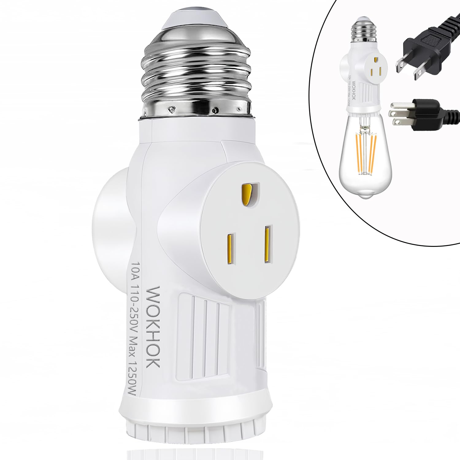 - 2/3 Prong Socket Plug adapter : The light bulb socket adapter can convert light socket to both 3 plug or 2 plugs,wider application range