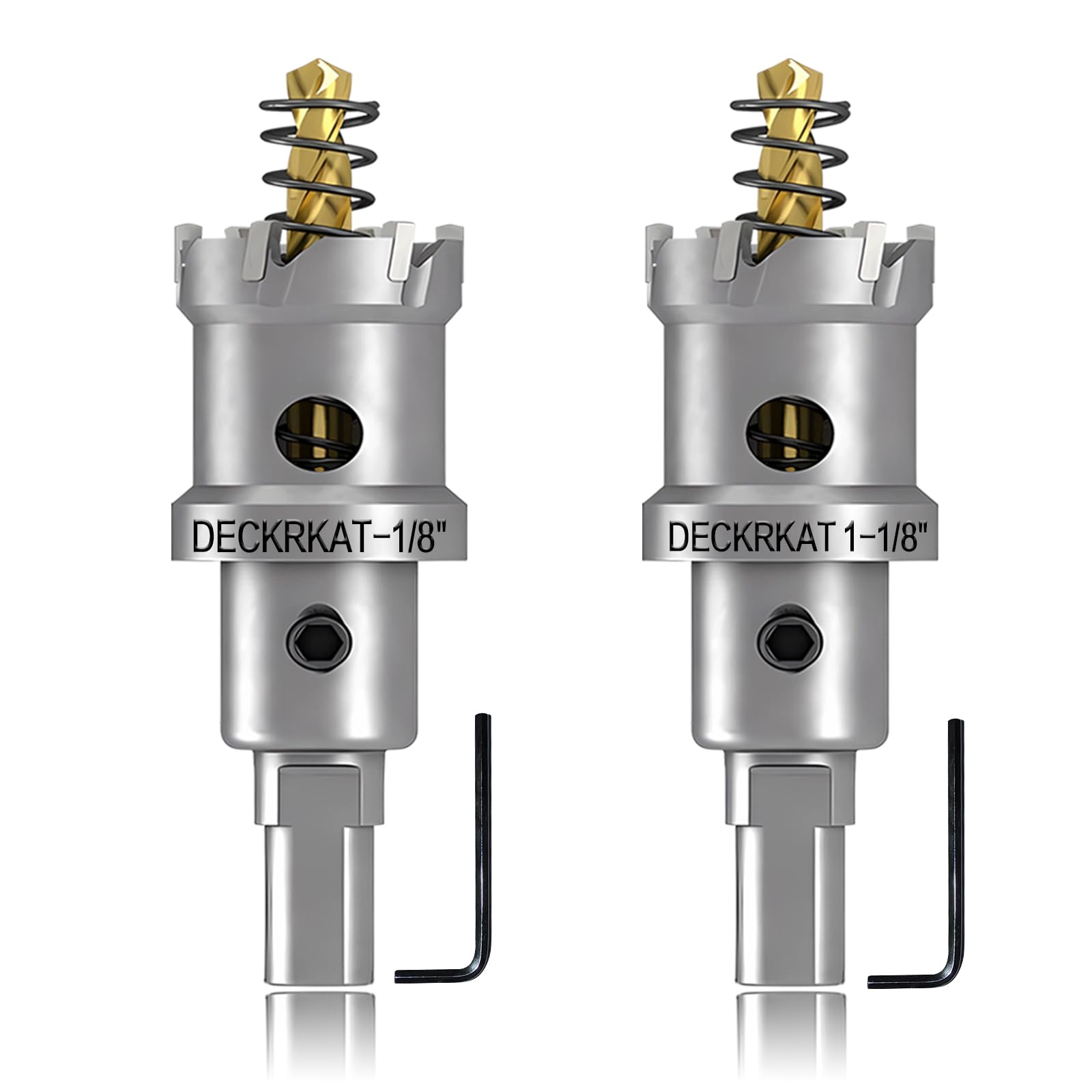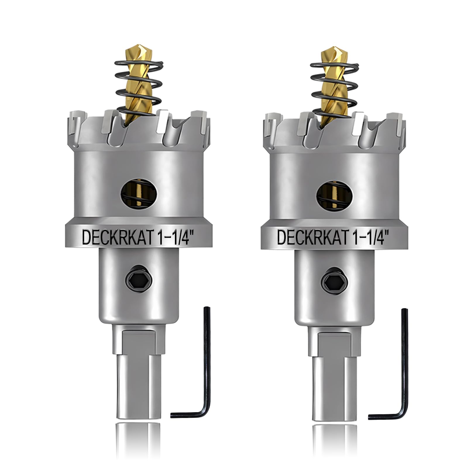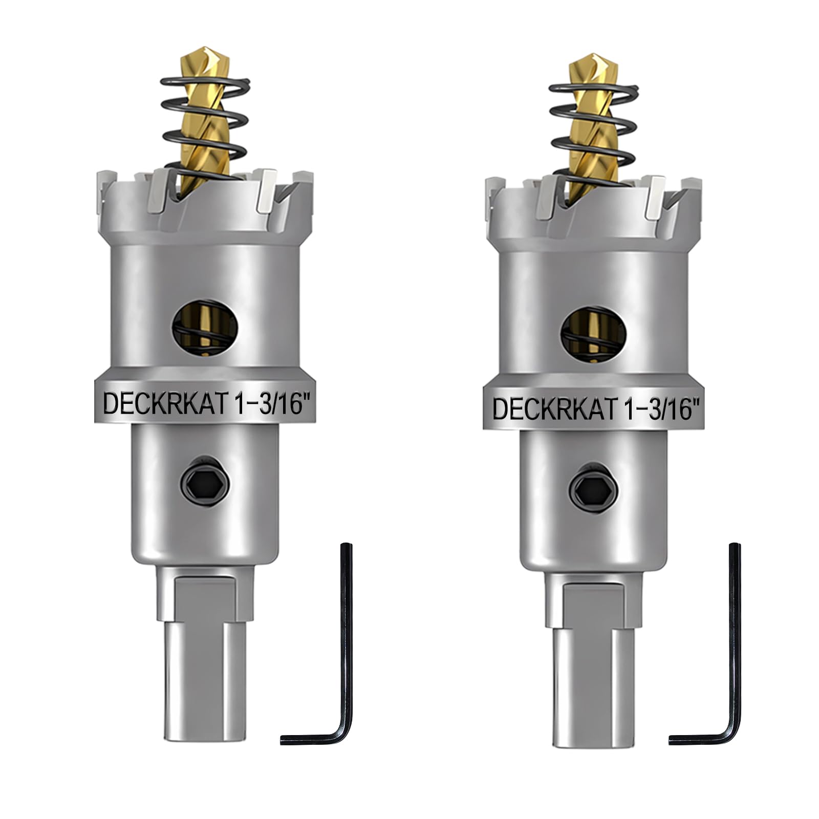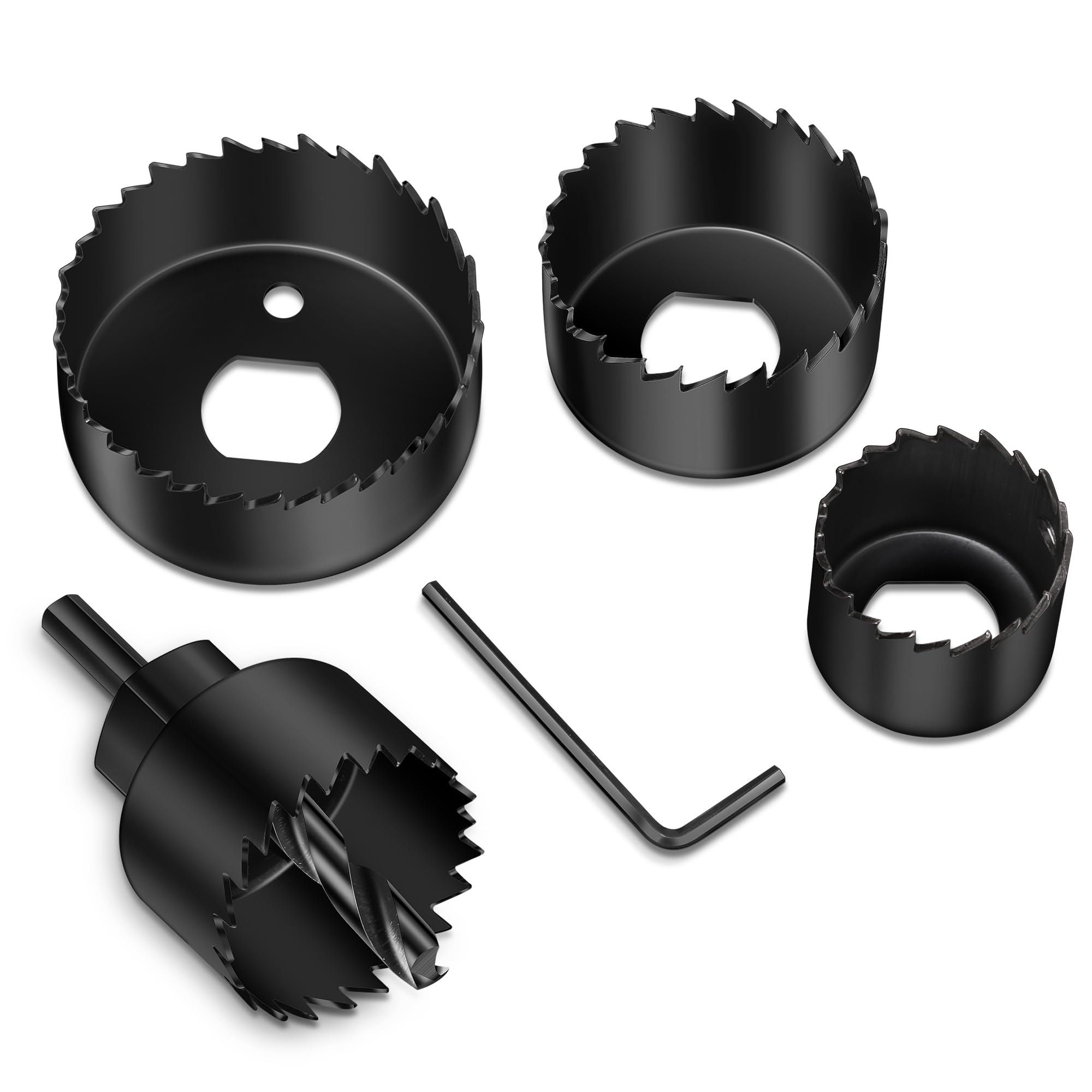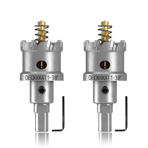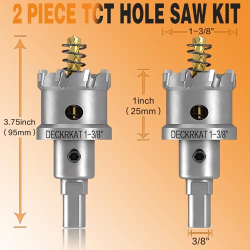 Heavy-Duty 2-Pack Set: This set includes two 1-3/8" (35mm) TCT Hole Saws with 1Inch Cutting Length, complete with pilot drill bits featuring spring-loaded mechanisms for efficient debris removal. A Hex wrench for securely tightening pilot bits is also included.