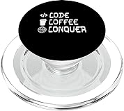 Perfect for indie hackers, bootstrappers, and coding enthusiasts who love to conquer challenges with coffee. Great for workspaces, coding meetups, or casual tech gatherings. Celebrate your passion for indie hacking and bootstrap culture with this fun, humorous design. Ideal for Christmas or birthday gifts for developers and tech-savvy friends. Funny Code Coffee Conquer design. MagSafe base attaches the PopGrip to your MagSafe-compatible case (not included). Printed top is swappable with other compatible PopGrip models. Just press flat, turn 90 degrees until you hear a click and remove to swap. Compatible with iPhone 12, iPhone 13, and iPhone 14 models. Works best with smooth, hard MagSafe compatible case. Wirelessly charge your iPhone by sliding off the magnetic PopGrip and setting your iPhone on a wireless charger.