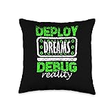 Deploy Dreams Debug Reality Bootstrapping Coder Indie Hacker Throw Pillow