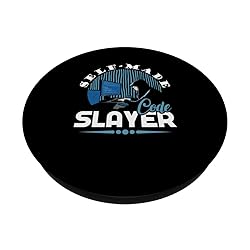 Perfect gift for developers and indie hackers who love coding and bootstrapping. Ideal for birthdays or Christmas, making it a cute and funny present for any self-made code slayer. Celebrate the spirit of indie hacking and bootstrapping with this adorable design. Great for coding enthusiasts and bootstrap lovers who appreciate a fun and motivational twist on their passion. Funny Self-Made Code Slayer design. Adhesive backing attaches the PopGrip to your case or device. Will not stick to silicone, leather, waterproof, or highly textured cases. Works best with smooth, hard, plastic cases. Not compatible with wireless charging Printed top is swappable with other compatible PopGrip models. Just press flat, turn 90 degrees until you hear a click and remove to swap.