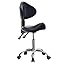 Taburete de silla con ruedas, silla ergonómica de altura ajustable con ruedas para clínica médica, tatuaje, peluquería, salón facial, artista de uñas, spa, taburete giratorio de cuero PU, negro