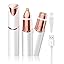 - [Pocket Size & USB Rechargeable] The facial hair removal epilators is powered by 180mAh built-in battery, charge it via power bank, PC or wall charger, making electric facial hair removal as a perfect travel mini shaver, mini design fits comfortably in hand, keep the hair razor in your beauty kit, purse, makeup bag