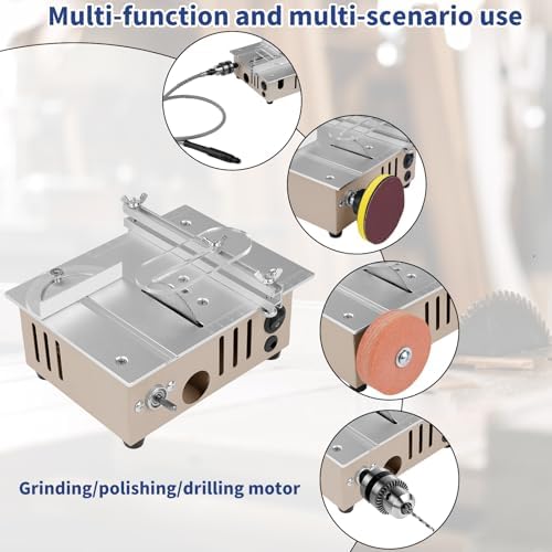 - Premium Aluminum Alloy Build & All-in-One Kit: Solid one-piece aluminum mini table saw body, durable and vibration-resistant; includes 5 cutting tools, 20 sandpaper sheets, grinding wheel, adapter & full accessories, ready for unlimited DIY projects out of the box.