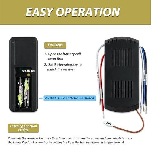 - 【Universal Ceiling Fan Remote Control】: Made from sturdy ABS material, this ceiling fan remote control replacement is lightweight and break-resistant, ensuring long-lasting use. It features a memory function, so your modern ceiling fan retains your last light setting and restores it automatically the next time you power it on.