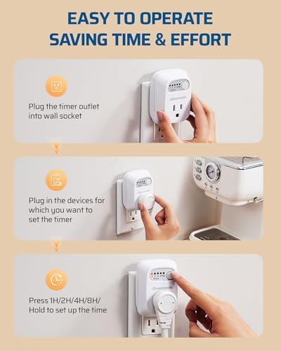 - [Wide Application] The timed outlet plug is perfect for a variety of devices, including curling irons, straighteners, hair dryers, electric irons, coffee machines, Wi-Fi routers, plant lights, indoor lamps, and other electronics; keep your essential appliances powered and organized; Note: Do not exceed the maximum power