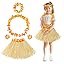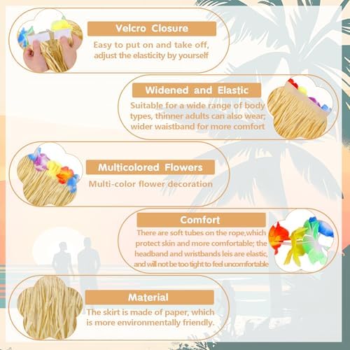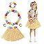 Fortuning's JDS Girl's Hawaiian Hula Grass Skirt with Flowers Costume Set Raffia Skirt for Luau Tropical Beach Party