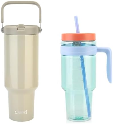 Cafezi 40 oz Insulated Tumbler with Cafezi 50 oz Single-Walled Tritan Plastic Tumbler - Leak-Proof Tumblers