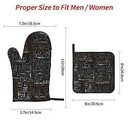 Design Description: The Use Of Full-Size Single-Side Printing Design, With Personalized Patterns, Colorful Style And Design, To Meet Your Needs For Style, But Also To Add Color To Your Kitchen. Product Performance: Thermal Insulation Gloves Are Made Of Waterproof Polyester Fabric + Thermal Insulation Fabric, Fine Workmanship Thick, Anti-Hot Heat Insulation. Protect Your Hands From Burns With Waterproof Fabric On The Inside And Outside. Application Scenario: Suitable For Kitchen Uncovering, Microwave Oven, Oven Dish And Outdoor Barbecue. Both Oven Mitts Are Perfect For Cooking In The Kitchen, Baking Or Barbecuing Outdoors. 2 Pot Holders Are Used As Hot Pads For Cooking Pots Or Coffee Makers To Avoid Damage To The Table Top From High Temperature Stock Pots. Product Structure: Contains 2 Heat Insulation Gloves And 2 Pot Cover Pads (1 With Pockets, 1 Without Pockets), Oven Gloves And Pot Rack Side Are Equipped With Hanging Ring Design, Easy To Store After Daily Use, With High Compatibility With Home And Kitchen. Washing Instructions: Pot Holder, Oven Mitts Are Necessary In The Kitchen, It Is Recommended To Wash By Hand, Not Machine Wash, Do Not Bleach.