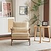 Karl home Accent Chair Wide Armrest Mid-Century Lounge Chair Teddy Fleece Armchair with Lumbar Pillow & Solid Wood Frame for Living Room, Bedroom, Balcony, Khaki