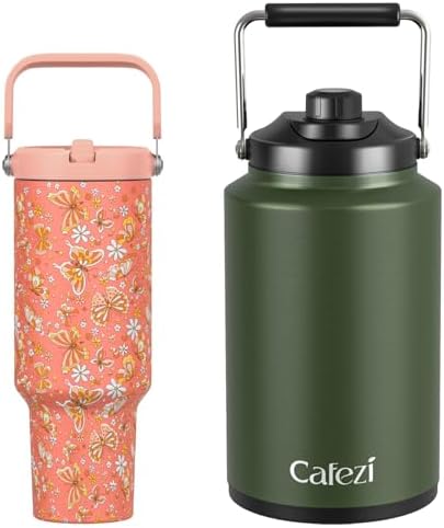 - VERSATILE 2-IN-1 LID - Enjoy the freedom of choice with our innovative 2-IN-1 Lid, offering both a sipping spout and straw for convenient hydration. No need for multiple lids anymore—simplify your life effortlessly. (Currently, aside from Cafezi, you won't find any 128 oz water bottles with this dual-function lid anywhere!)