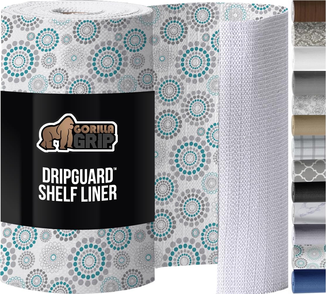 【EASY TO CLEAN】: Washable kitchen cabinet liners for shelves help to protect your cabinets shelves and drawers from wetting, accumulating stains and dirt. you can easily wash any stains with water or neutral soap and this shelf liner doesn't leave any stain marks and dry quickly.