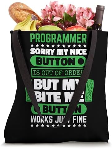 Bite Button Works Fine Programmer and Programming Tote Bag
