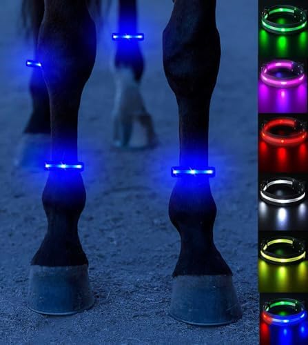 4pcs LED Horse Leg Band, 7 Colors in 1 Light up Horse Tack, USB Rechargeable LED Horse Light - Added Visibility & Safety for Night Horse Riding